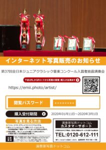 【第37回全日本ジュニアクラシック音楽コンクール入賞者披露演奏会】の御写真公開期間の延長を致しました。